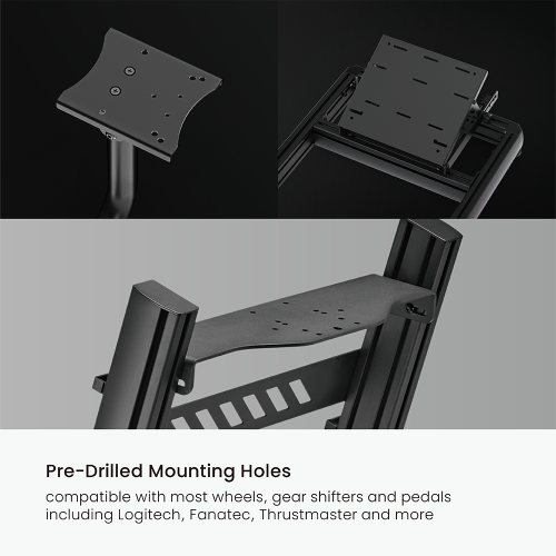Pre-drilled for full compatibility with leading brands like Thrustmaster®, Logitech®, MOZA®, FANATEC® and more.
