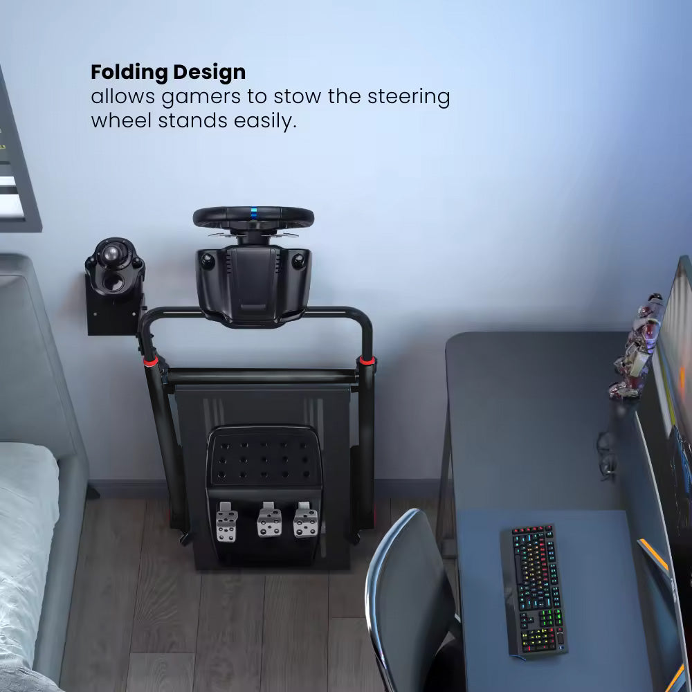 Foldable design for space-saving storage when not in use. It not only facilitates easy storage by simply leaning against the wall but also paves the way for an uncluttered gaming environment.
